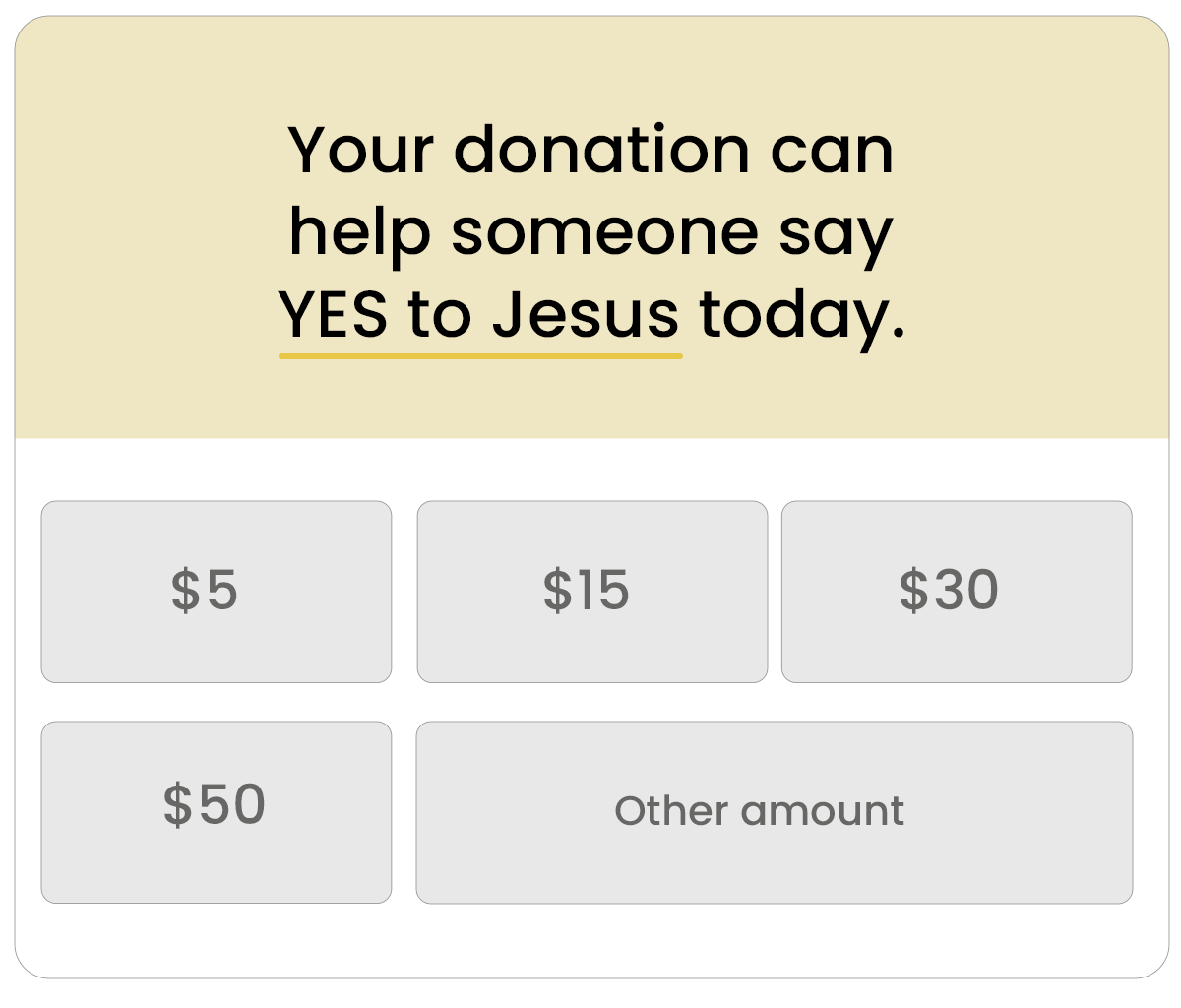 You’re part of the most loving thing we can do—sharing Jesus with the world. Your generosity carries the hope of salvation to people who need it most.